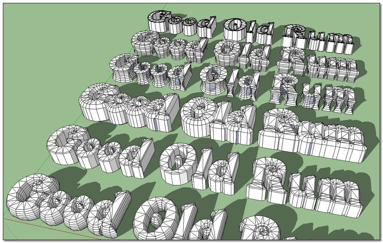 I know that SU now has its own 3D text tool, but that tool is fairly basic. Don't forget the solution of choice before the built-in option (or the Smustard Ruby)