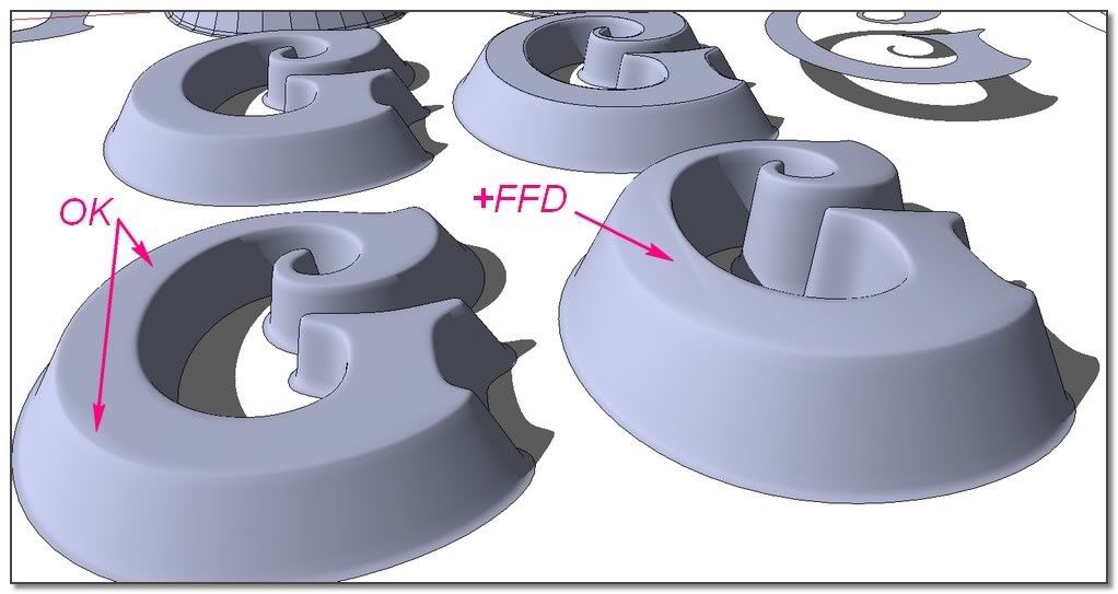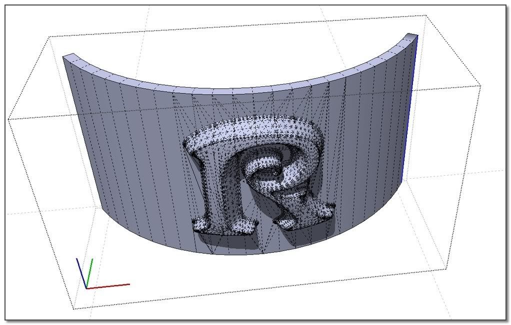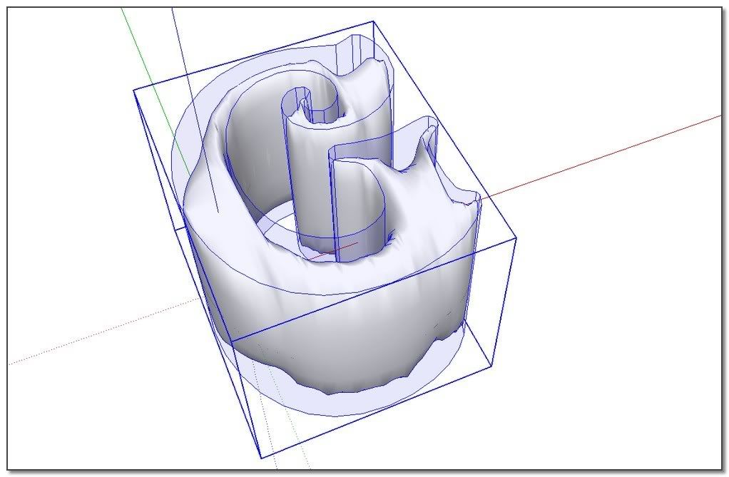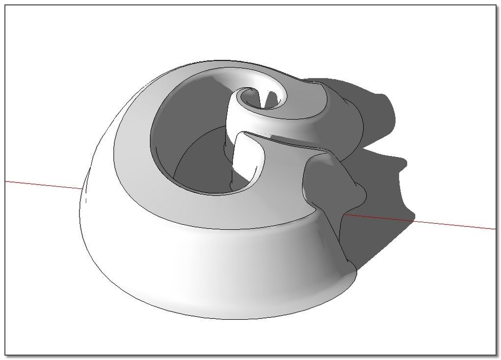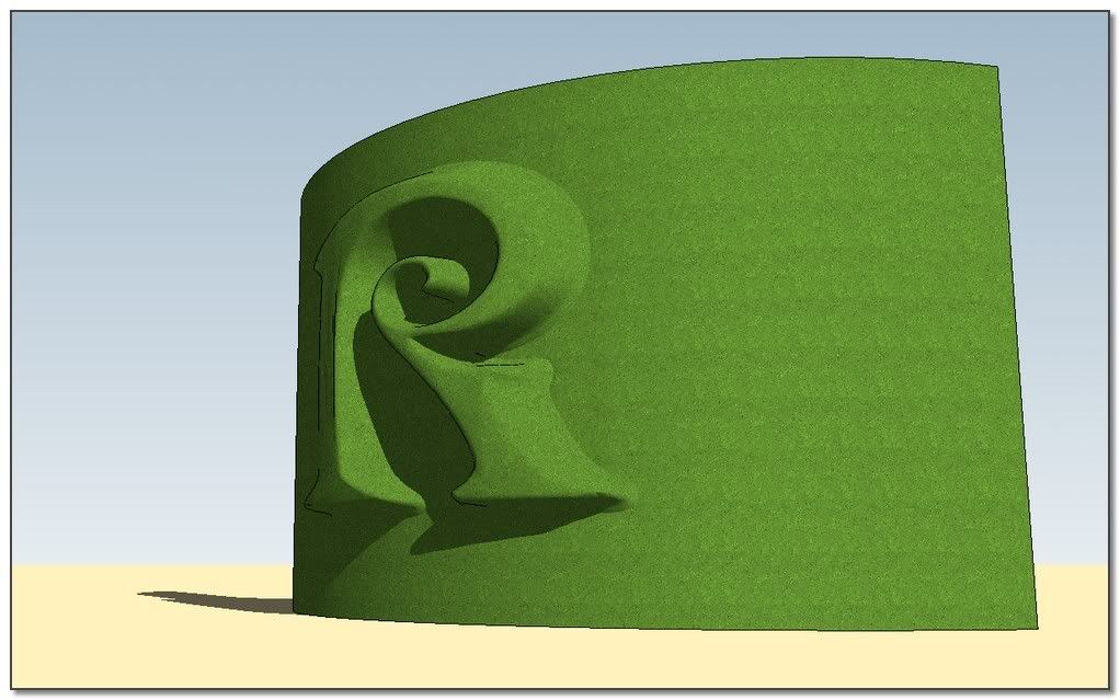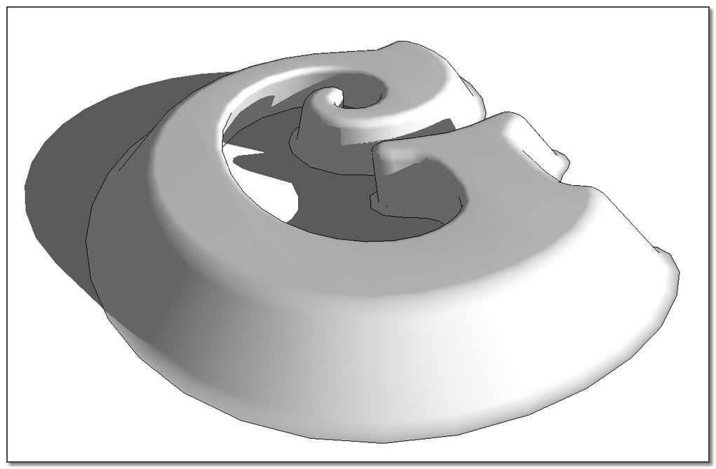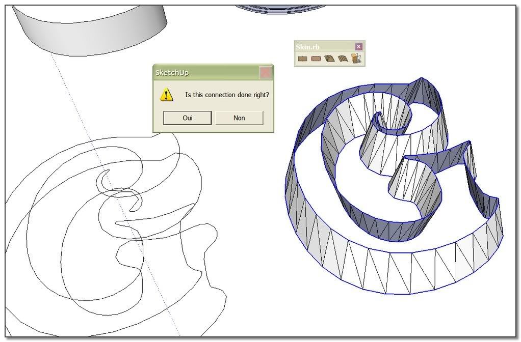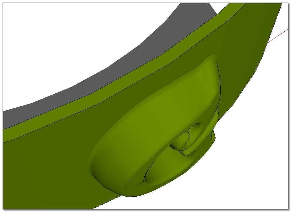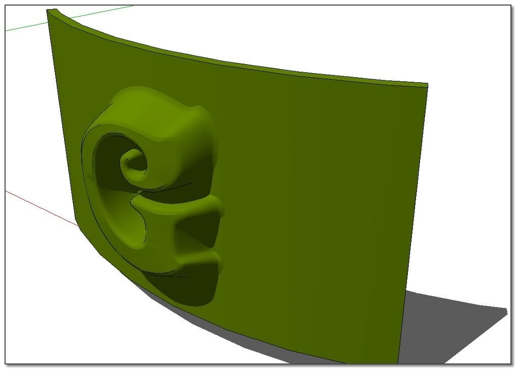 The idea: apply the process on a very low shape and scale it after. I'm starting from the offseted and skined shape from Elisei. The result is not bad but S&S do very better. Its job isn't really for that kind of thing.