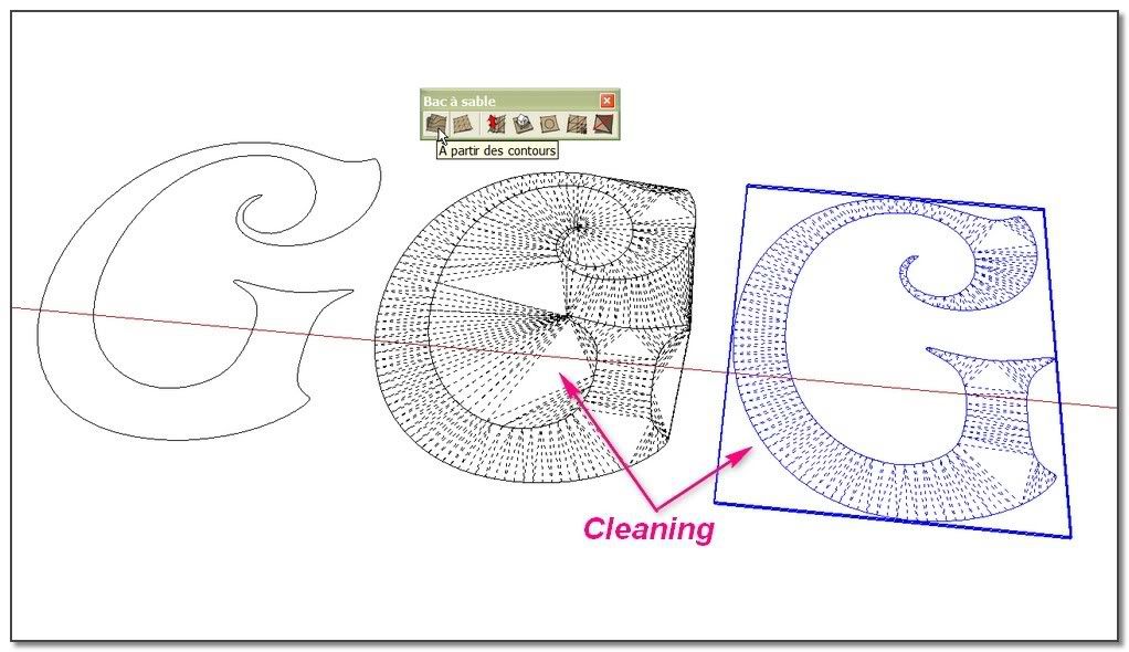 I need to subdivide the top of the letter. I'm using SandBox tool: from contour.