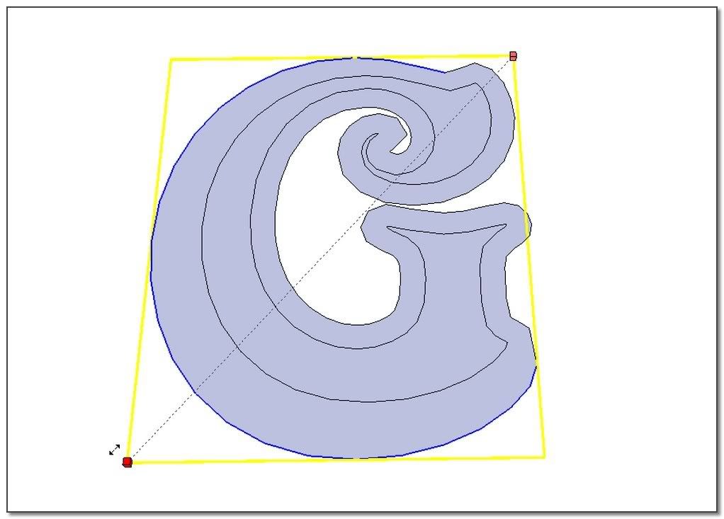 Now using SkechyFFD to put some irregularity to the letter (I glue the bottom points)