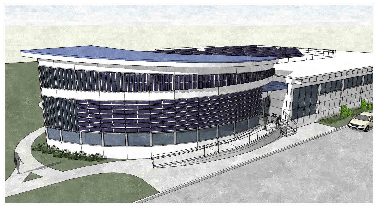 Nice effects. How did you manage that? It looks like simple SU with an overlay pattern added in PS? But you handled some areas, like the dark windows differently. So this was a sort of design competition, just to get the job? Is this a sign of the times?