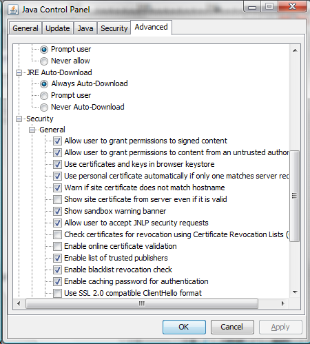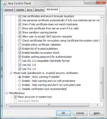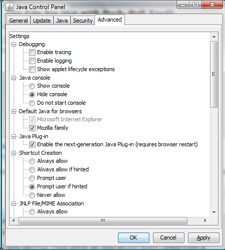 Is there a Java Control Panel ?