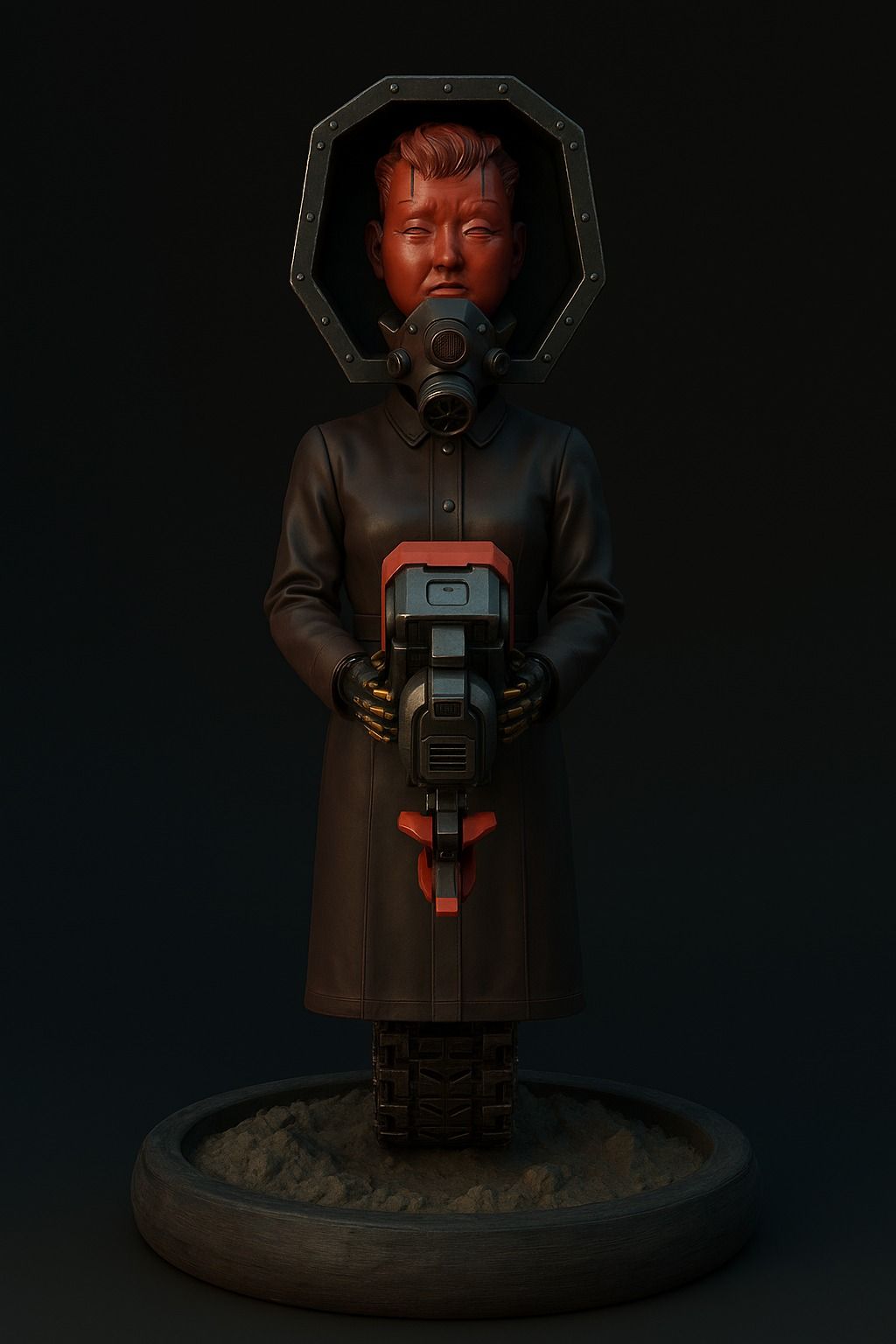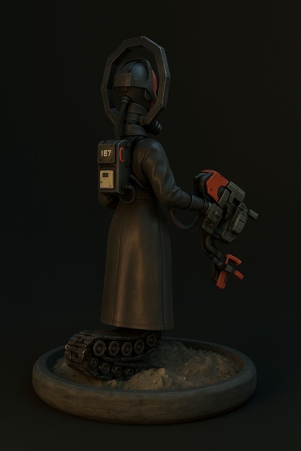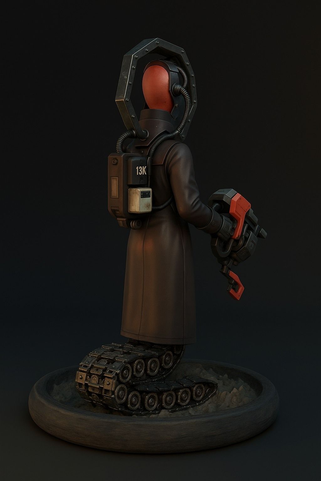 The initial idea came from the medieval dagger called "mercy", used on the battlefield to finish off the dying with a final gesture. I imagined a half-machine, half-human figure, whose function would be to roam the imperial battlefields after the end of the fighting, to bring death to the irreversibly wounded — not out of cruelty, but as an ultimate form of piety.