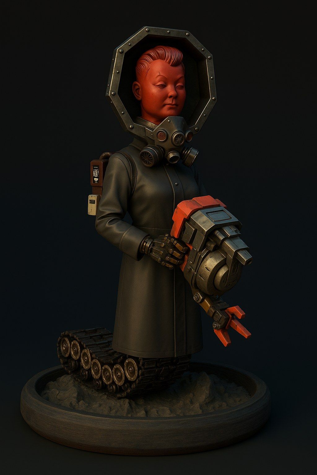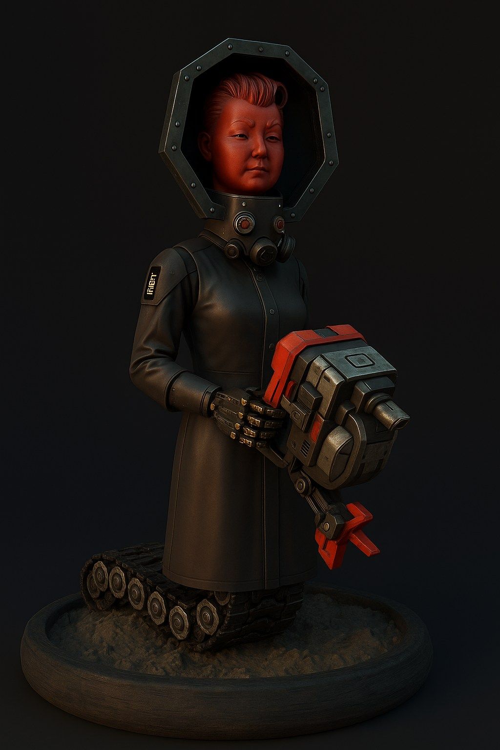 → Lower trunk replaced with a light tank tracked movement module, silent on soft ground.