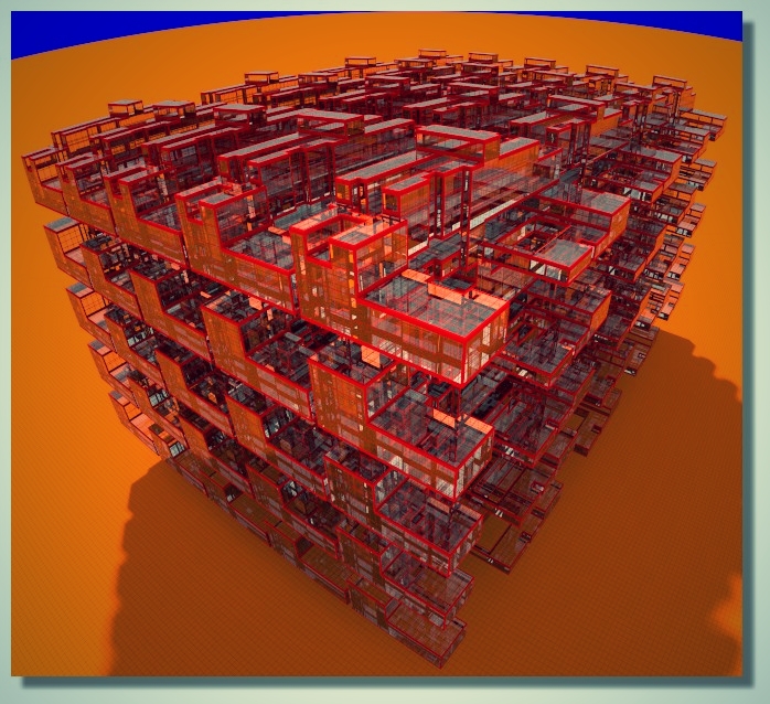 Transparency: the little cubes in the space are used as a trick when you import your object for automatically fix its position (so 8 little cubes) inside the Matrix! You can of course erase them before rendering!