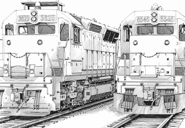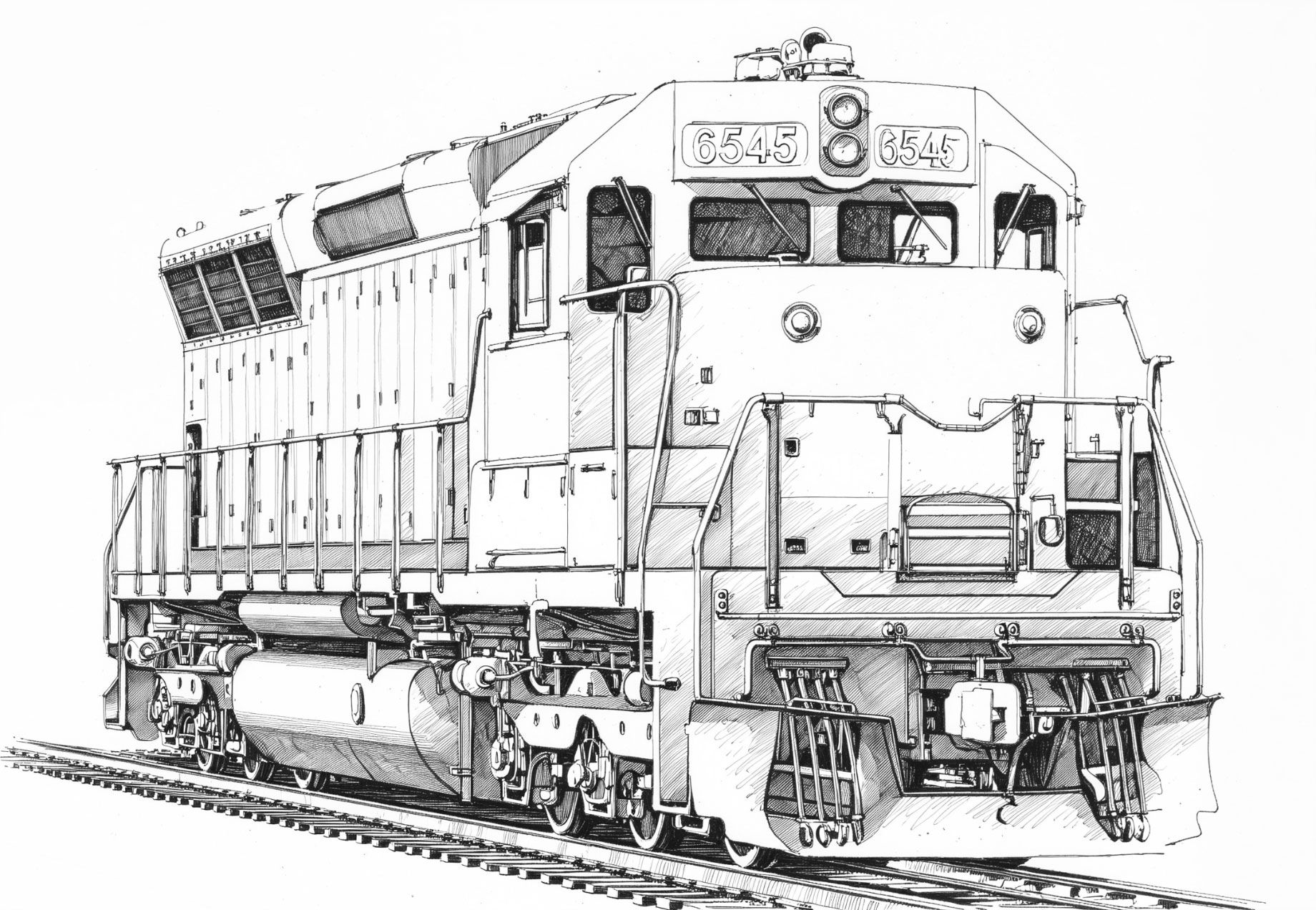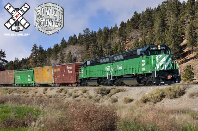 This is similar to my Union Pacific SD45. Differences overall being different Flexicoil trucks; antenna location; safety light, Nathan horns; and a snow plow/pilot at the front end.