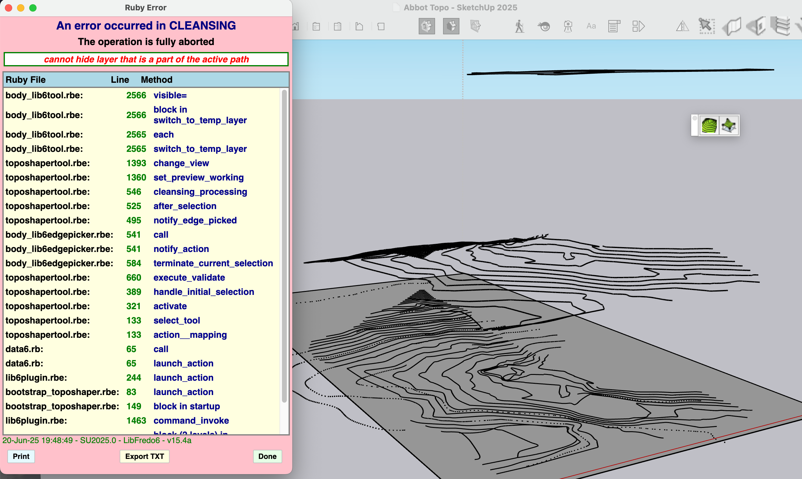 @fredo6 I have the topo lines in a group and that is inside another group. If Im inside the mother group and laugh topo will I get the error?