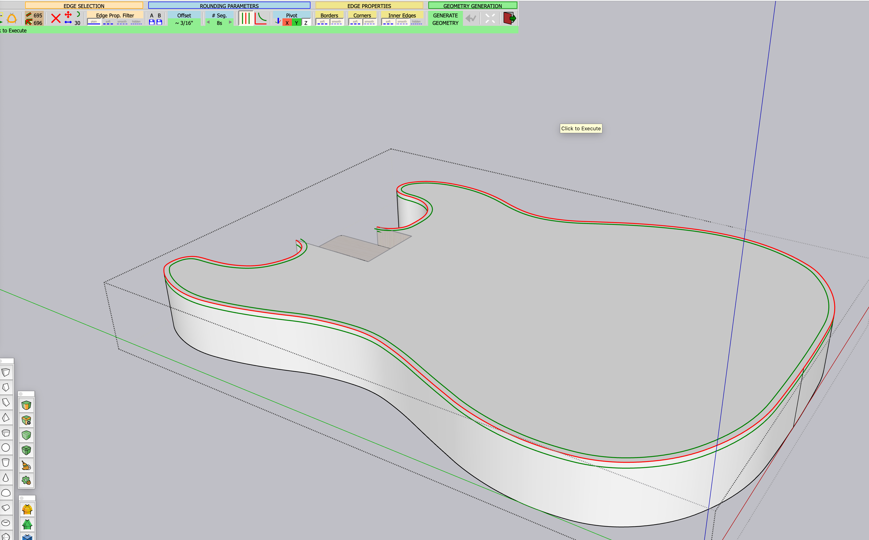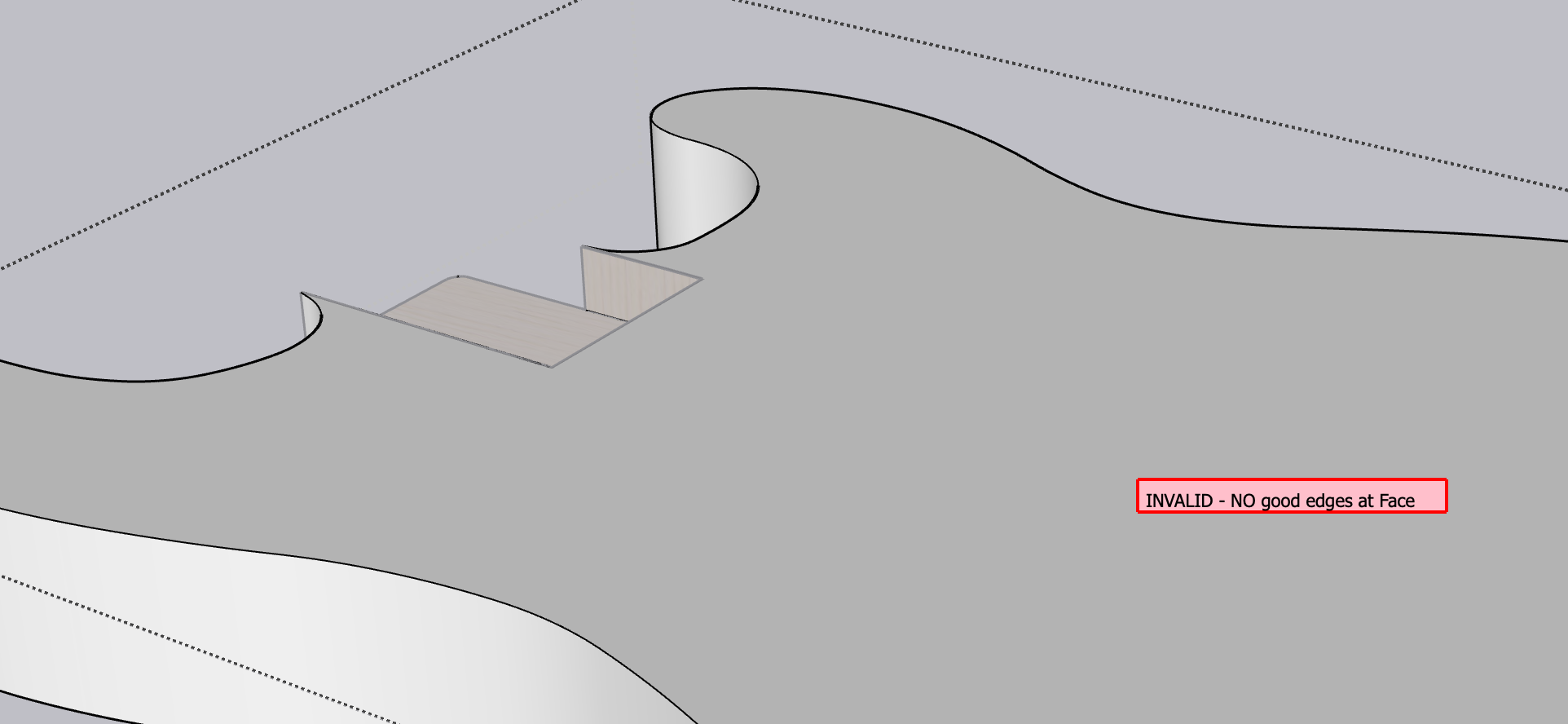 See the attached SKP file - it's a simple guitar body that I want to bevel the edge of. FredoCorner fails in assorted ways when I select the top face - sometimes saying "INVALID - No good edges at Face", and sometimes saying "An error occurred in the ruby code" (or something to that effect).