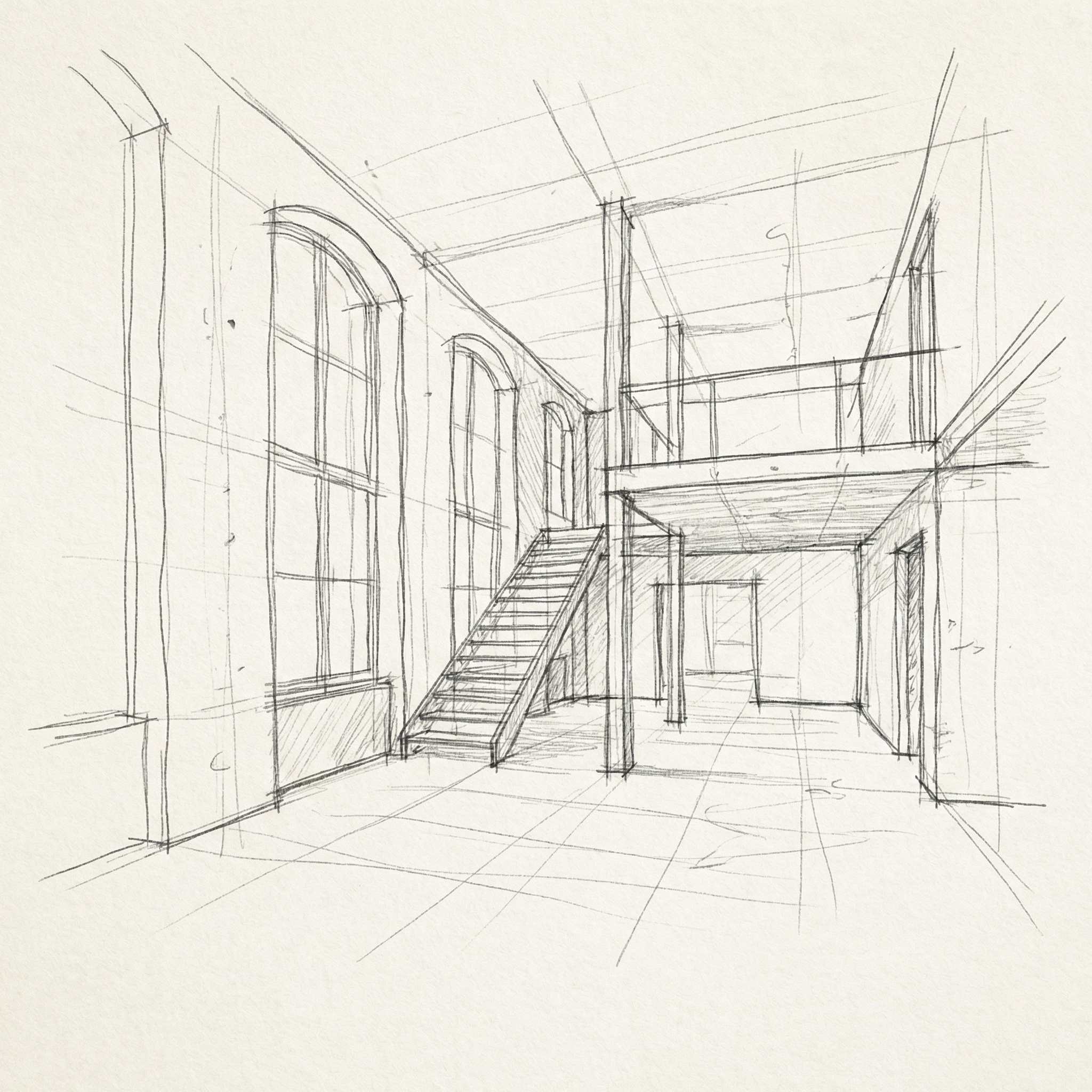 Instead of jumping straight into detailed modeling or rendering, I start with a very loose sketch — just lines, proportions, and basic composition. Then I use AI to explore how that sketch could translate into lighting, materials, and overall mood.