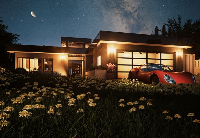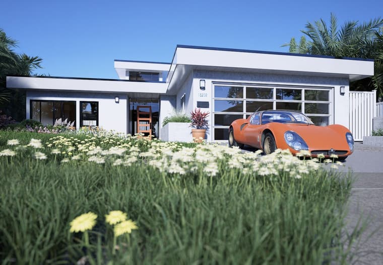 I think I might finally make some money off this never ending project. I contributed to the design of the house. The garage is just a relatively simple structure. I would have done something with parapets to match the house. This was rendered in D5 Render.