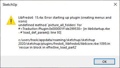 c:/users/trask/appdata/roaming/sketchup/sketchup 2020/sketchup/plugins/fredo6_!libfredo6/lib6plugin.rbe:71:in <module:Traductor>' c:/users/trask/appdata/roaming/sketchup/sketchup 2020/sketchup/plugins/fredo6_!libfredo6/lib6plugin.rbe:23:in <main>'
